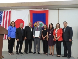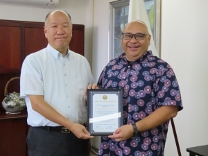 Following the reception, Mr. Jesse Alig, President of the Mayors’ Council, visited the Consulate-General of Japan Office and presented a certificate of recognition to the Consul-General.